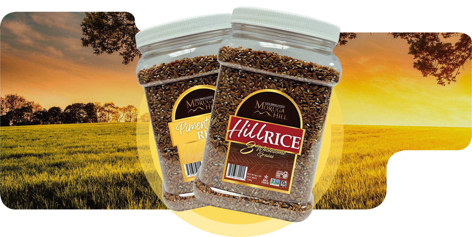 A blend of one or more of the 5 varieties of All-Natural Vista Dorado Estates Moruga Hill Rice®